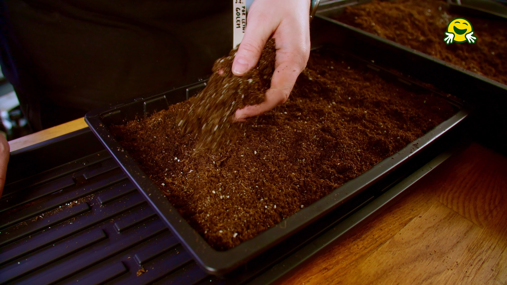 Výsevní misku naplňte substrátem. Vrstvu nechte alespoň 6–7 cm hlubokou, aby měly kořeny kam růst. Substrát urovnejte a lehce upěchujte.