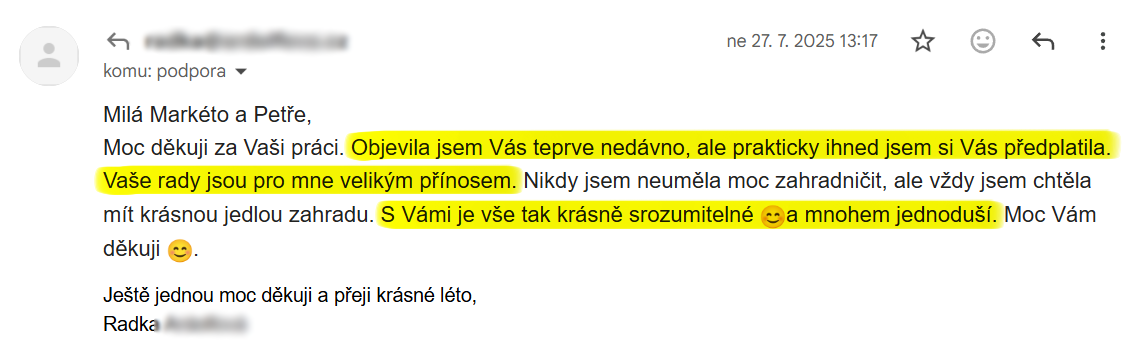Potřebujete poradit se zahradou nebo s pečením? Máme s Petrem dohromady více než 30 let zkušeností. Umíme dohledat v angličtině i v odborných zemědělských dokumentech. Nesedíme u počítače a nekopírujeme texty dokola z článku do článku. Veškeré informace si důkladně ověřujeme a zkoušíme sami na naše náklady, na naší zahradě nebo na našich receptech.